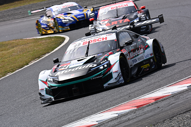 決勝日も前日に続き快晴で、汗ばむほどの陽気となった。決勝レースは82周回で争われる。Modulo Nakajima Racingのスタートドライバーを担当するのは大草。大草は12番グリッドからスタートを切り、ポジションキープでオープニングラップを終える。その後、大草は12、13番手争いを繰り広げつつ苦しい周回をこなし、13番手を走行していた29周目にピットインをしてフラガに交代する。ミニマムの周回で交代したためロングスティントとなったフラガは冷静に周回をしていく。14番手を走行していたが、1台後退したマシンがあり13番手に。フラガは初めてのGT500のレースとなったが、落ち着いた走りで自分のスティントを走り切り13位フィニッシュとなった。