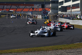 気温19℃、路面温度40℃、完璧なまでの秋晴れのなか、フォーミュラ・ニッポン第6戦オートポリス大会のスタートが切られた。スタートと同時にロイック、大嶋、伊沢、井出選手の4台が絡むクラッシュが発生。山本、小暮共この混乱を上手く避け1コーナーに進入。